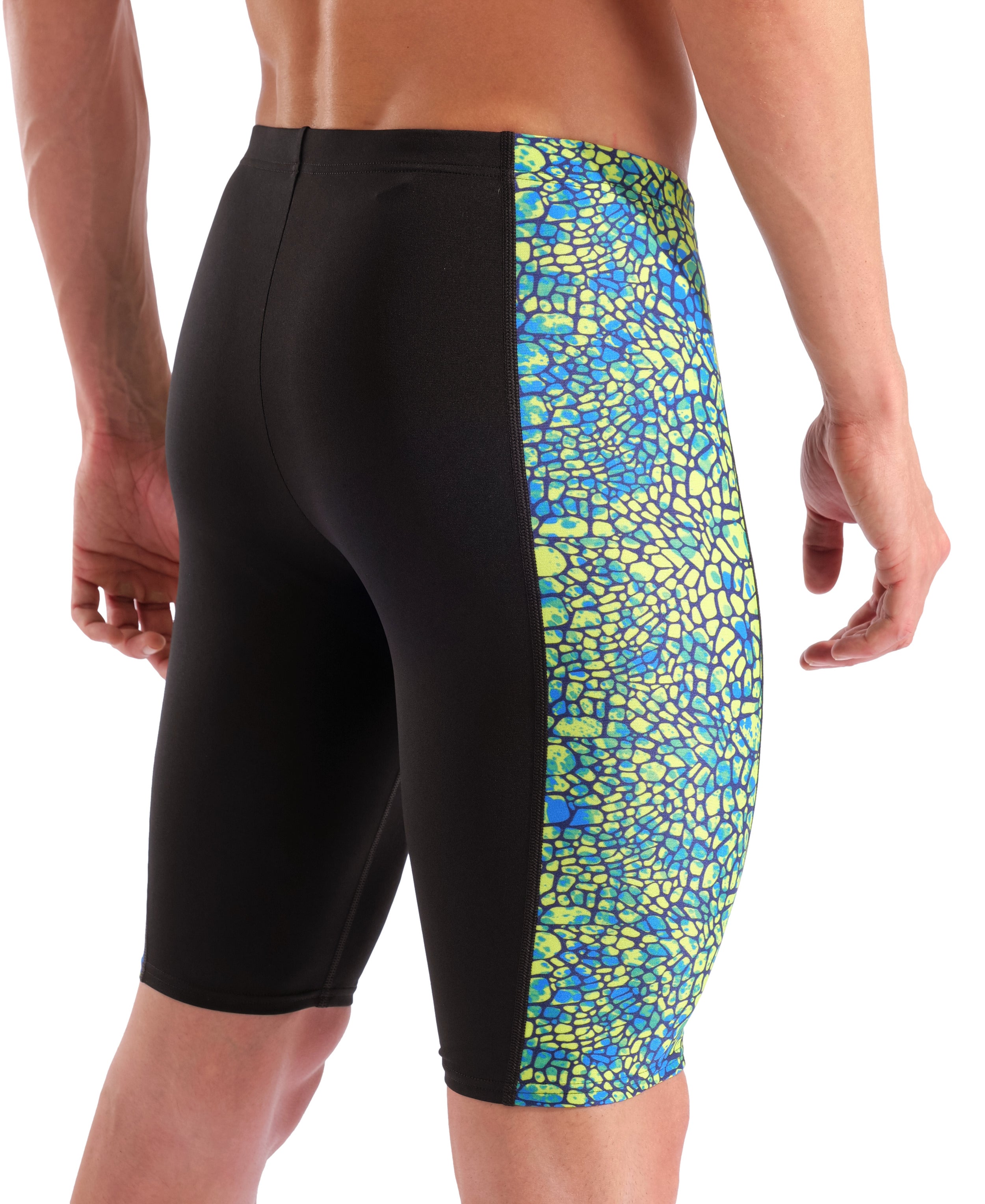 Gå i stealth mode med Arena Snakeskin Swim Jammer – designet til svømmere, der vil kombinere fart, fokus og stil. Med sit sort-grønne snakeskin-inspirerede mønster og tonale paneler, der afspejler vandets bevægelse, leverer denne jammer både kraft og præcision i vandet.