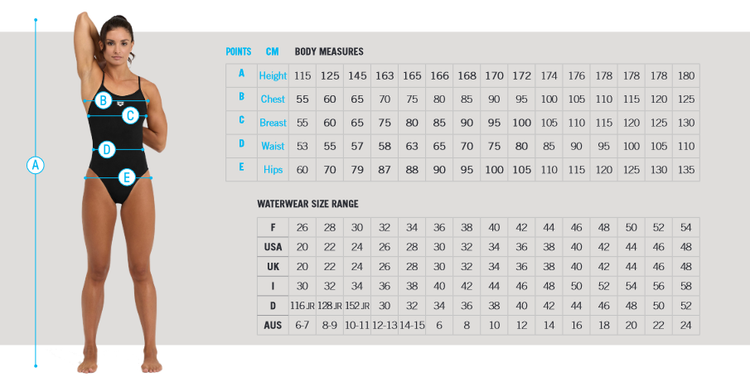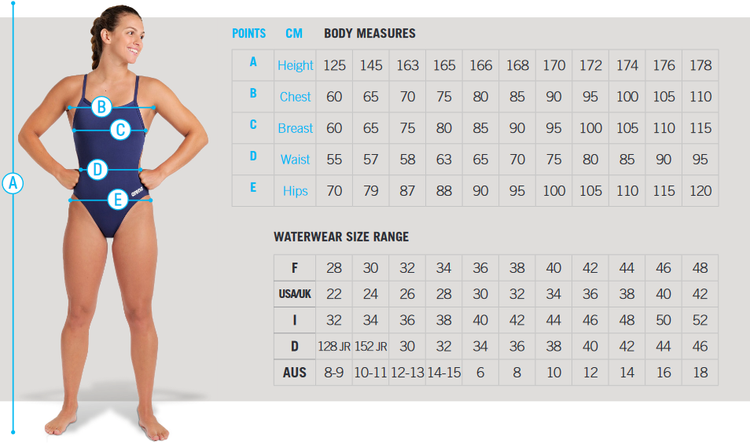 På Arenashop.dk tilbyder vi badetøj i størrelser F. (F for Franske Størrelser)