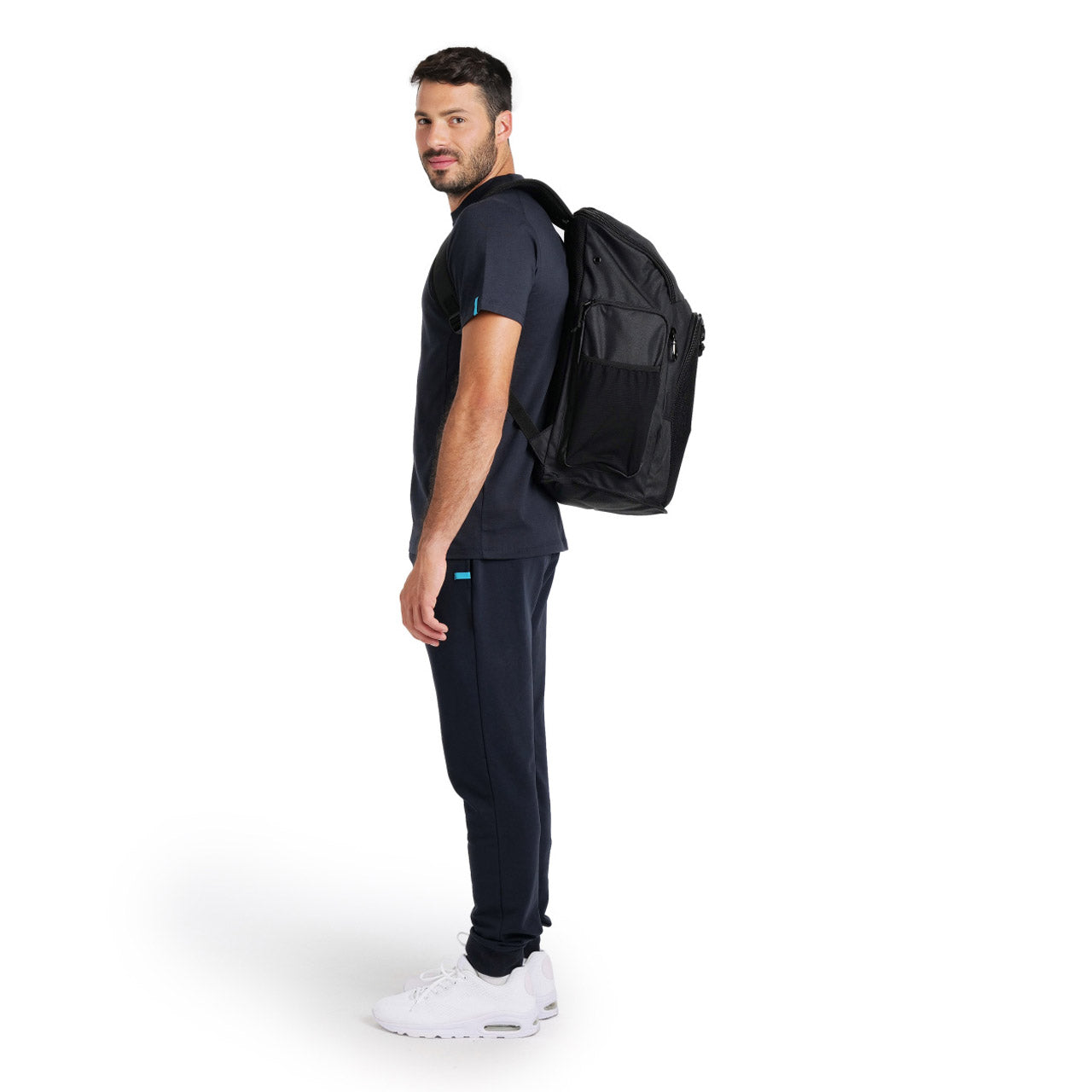 Den rummelige arena Backpack Team 45L er specielt designet til svømmere. Flere lommer med hurtigtørrende maskeindsatser og et vandtæt bundrum sikrer fremragende opbevaringsplads. Det polstrede bagpanel og skulderstropper garanterer fremragende komfort.