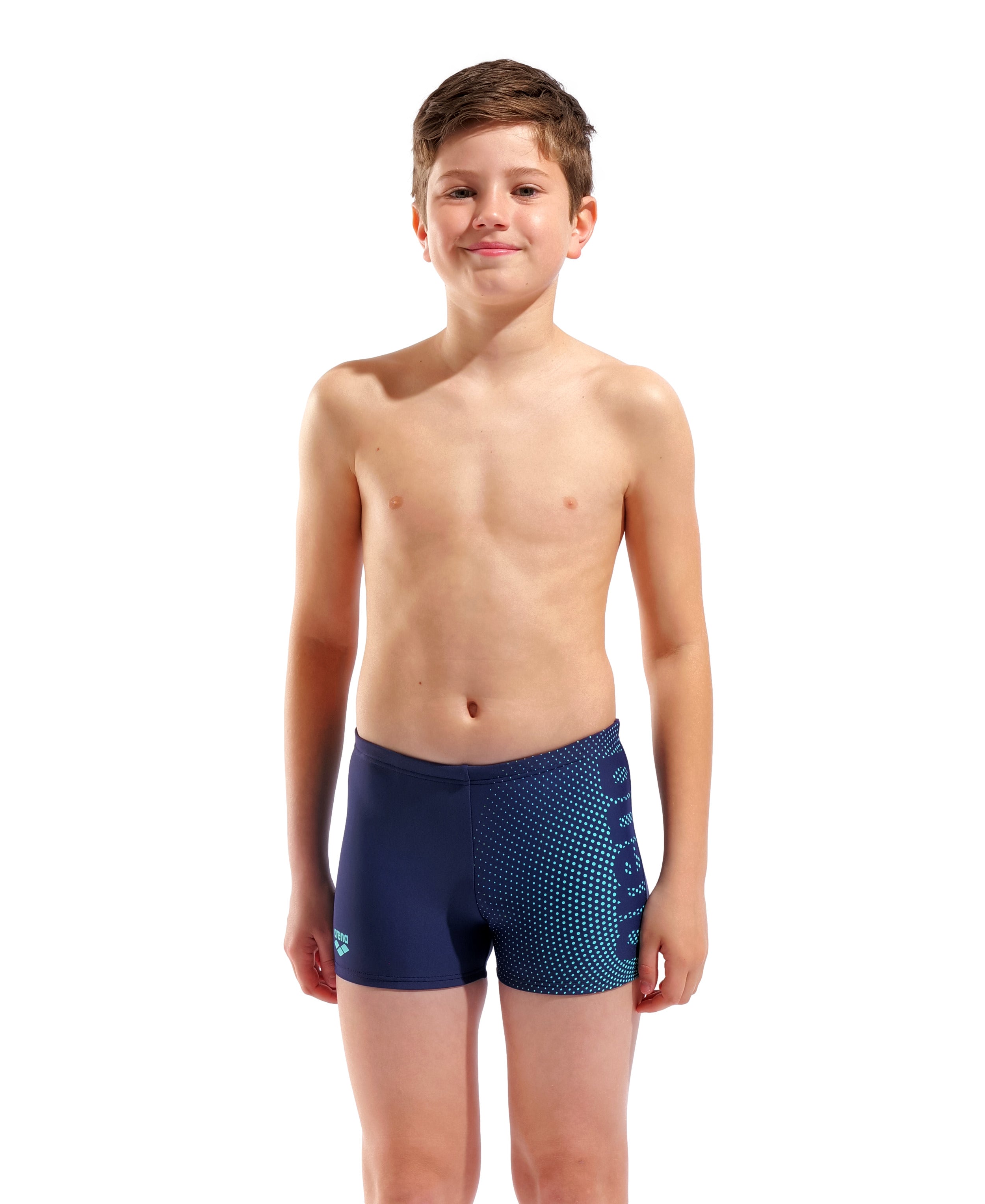 Sporty badebukser til drenge med Arena-logo og farverige prikker