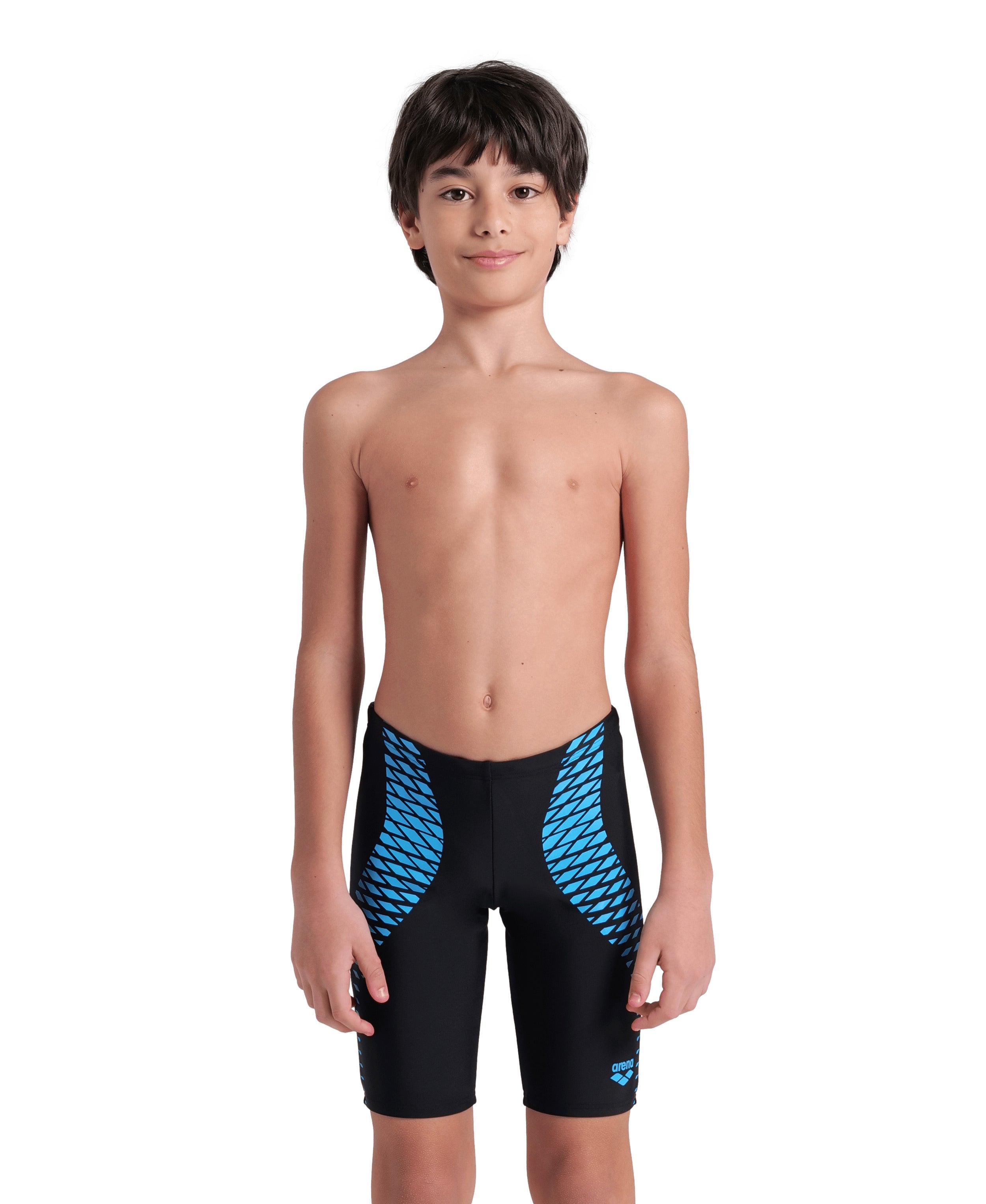 Arena Boys’ Openings Swim Jammer kombinerer sporty performance med et skarpt, grafisk udtryk. Med sit geometriske print og tætsiddende pasform er disse badebukser inspireret af pro-niveau designet fra voksenmodellen – perfekt til unge svømmere, der vil skille sig ud i poolen.