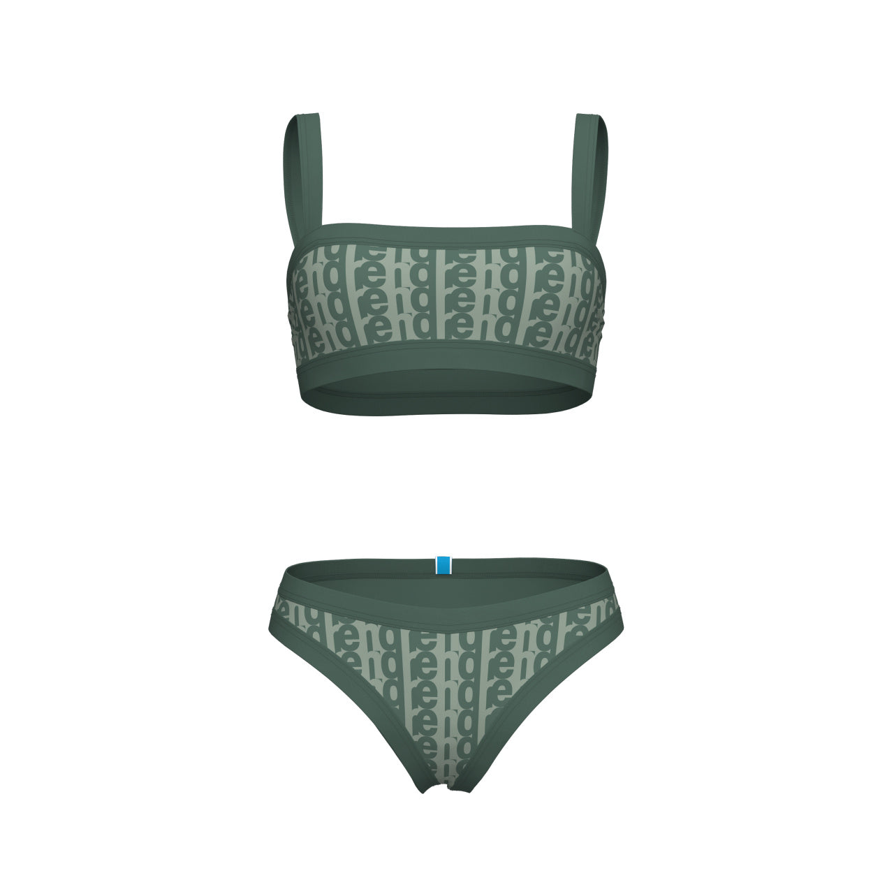 Vores Monogram Bandeau Bikini til kvinder kombinerer praktik og komfort fra en todelt badedragt med den sporty stemning og ydeevne fra en heldragt. De brede stropper og lavt skårne bund gør dette til et stilfuldt valg, uanset om du slapper af i solen eller spiller strandtennis i sandet.