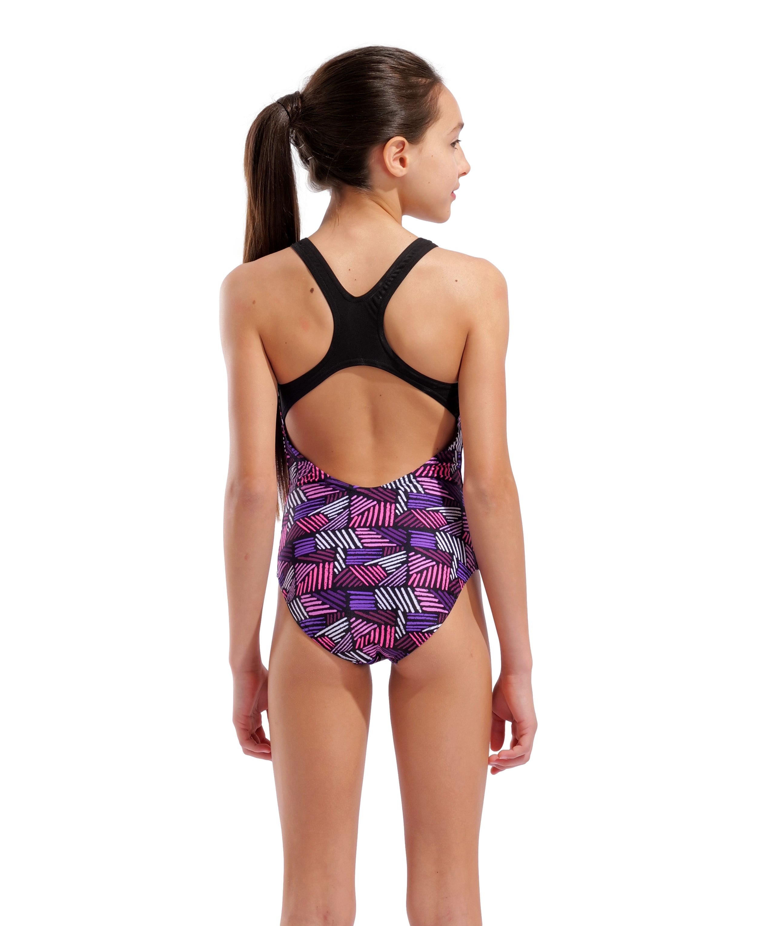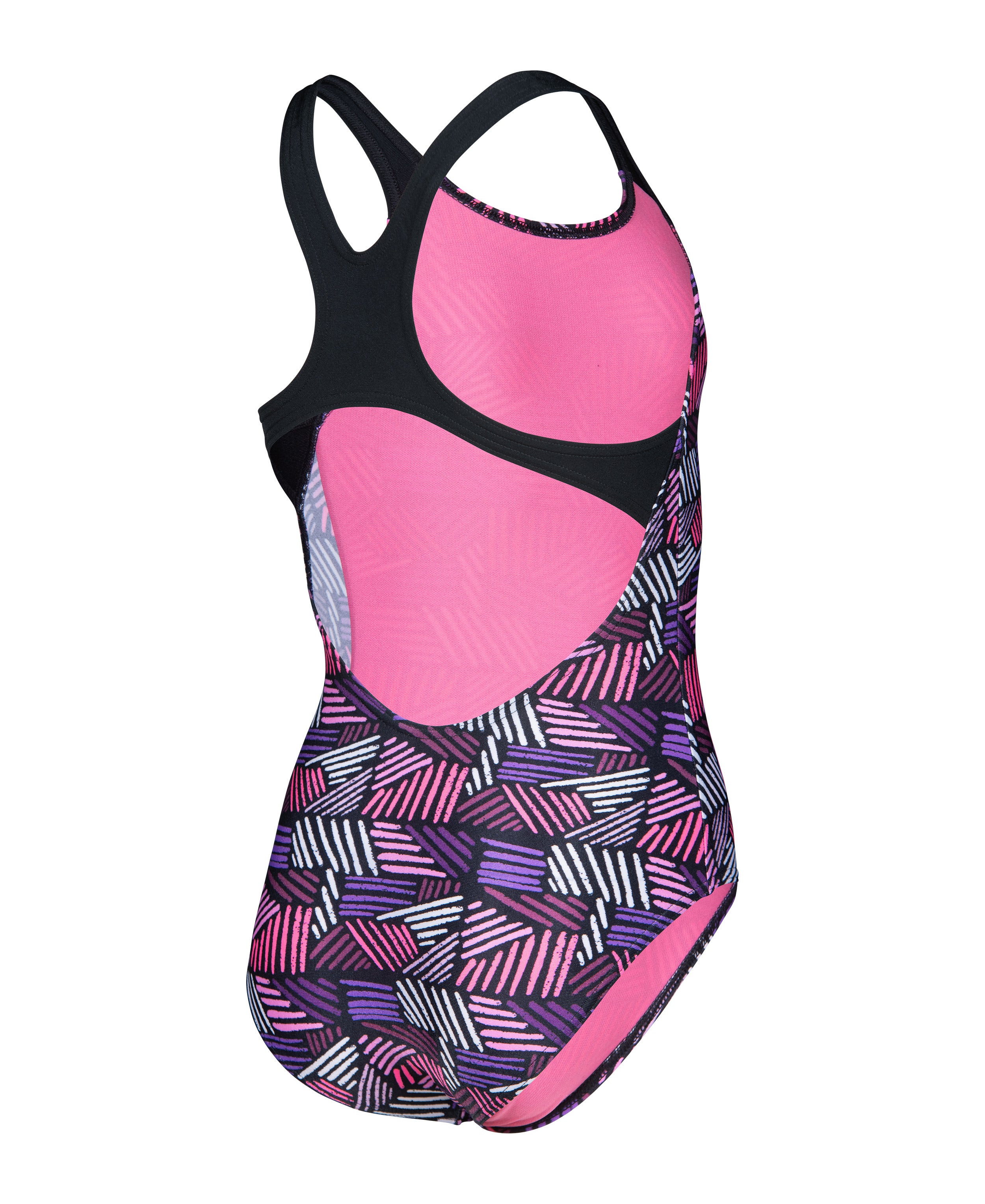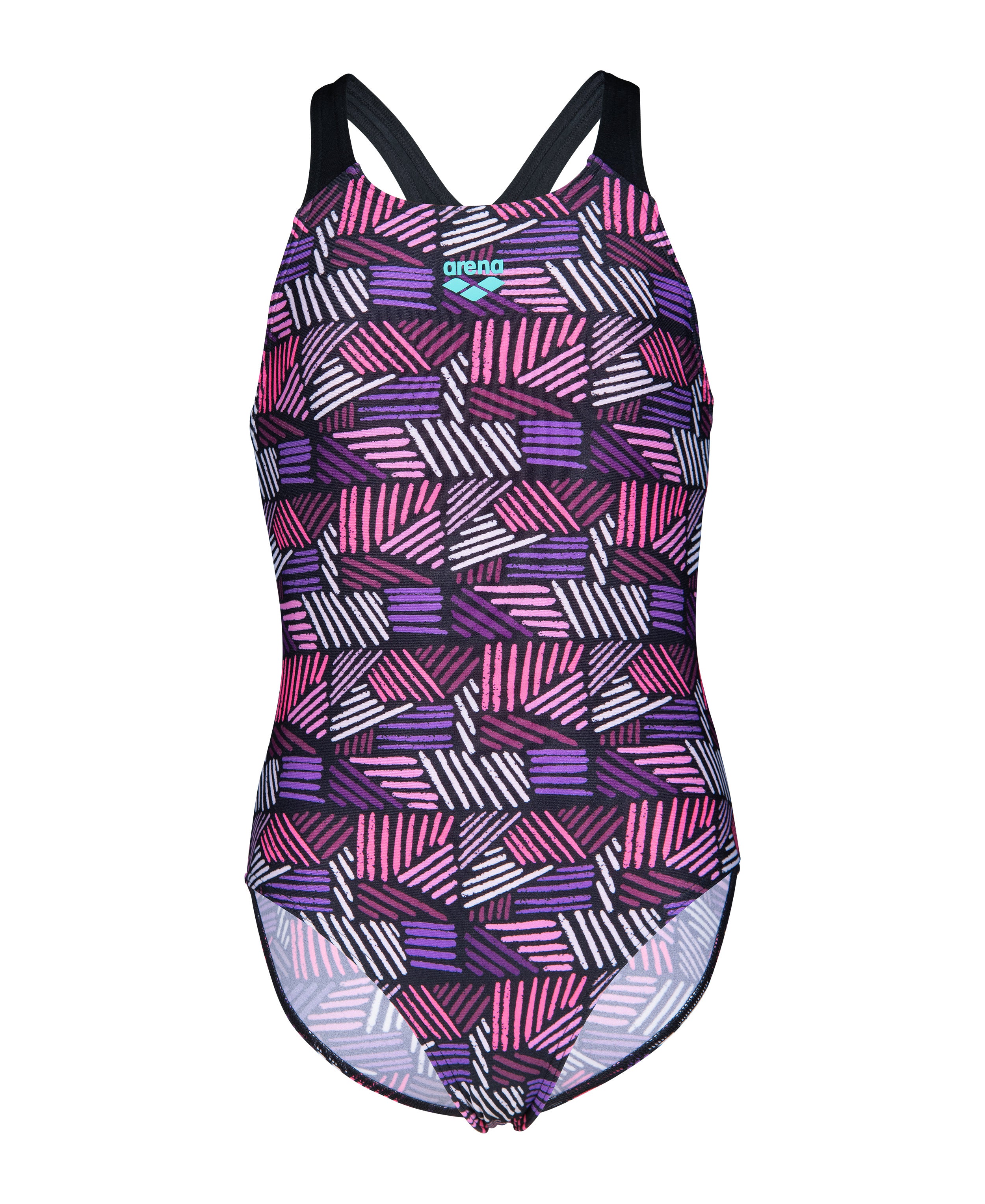 Arena Candies Swimsuit kombinerer legende design og seriøs funktionalitet. Med sit stribede slik-inspirerede print i farverige nuancer lyser badedragten banen op, samtidig med at den giver støtte og komfort til unge svømmere. Den er udstyret med en Swim Pro-ryg, der giver sikkerhed og bevægelsesfrihed – perfekt til regelmæssig træning i poolen.