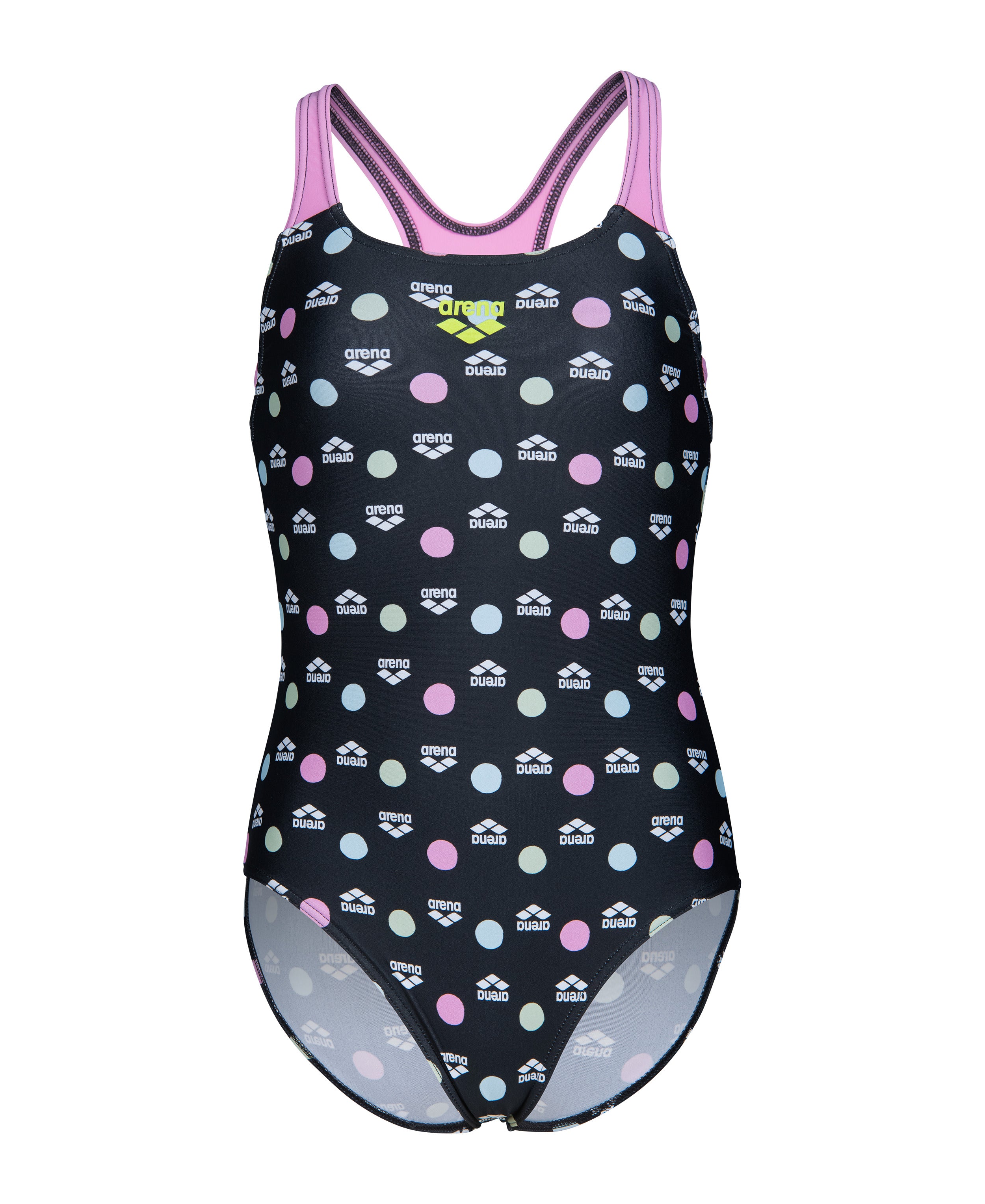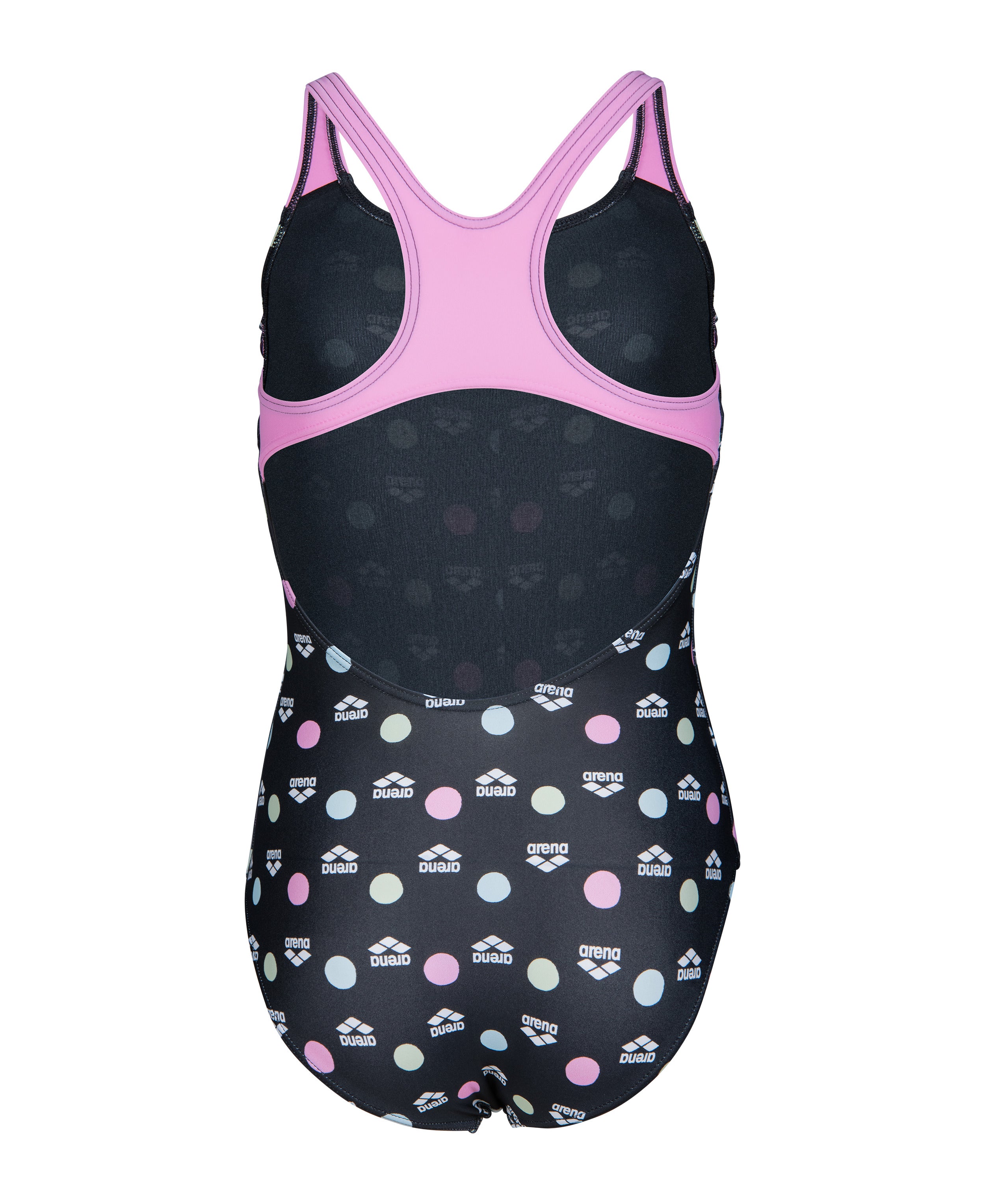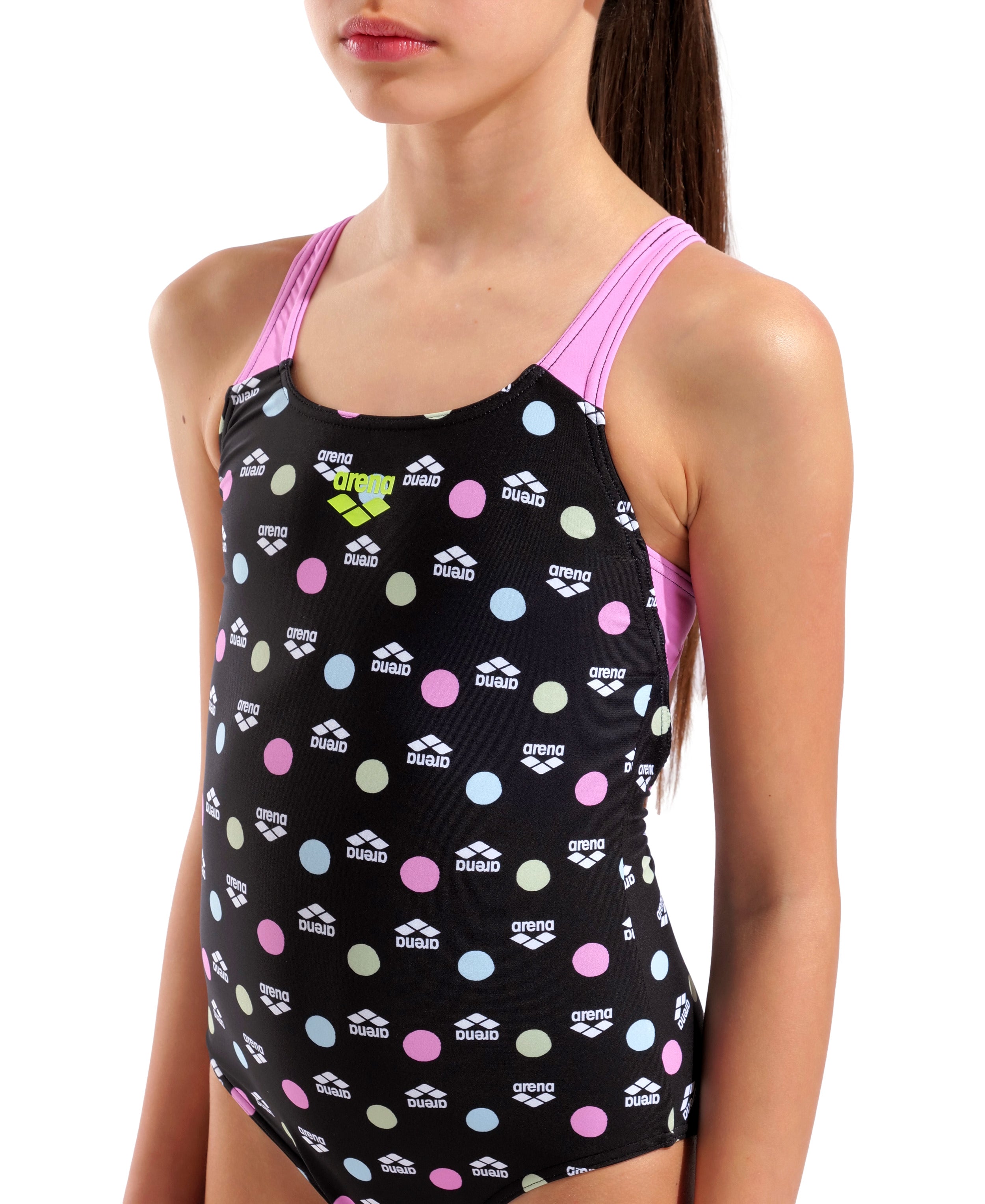 Arena Multiple Dot Swim Pro Back Swimsuit er en del af den komfortable Arena Feel-kollektion og er designet til at sidde som en ekstra hud. Badedragten kombinerer stil og funktionalitet med sit flotte prikkede mønster og en ergonomisk pasform, der gør den perfekt til både træning, leg og strandture.
