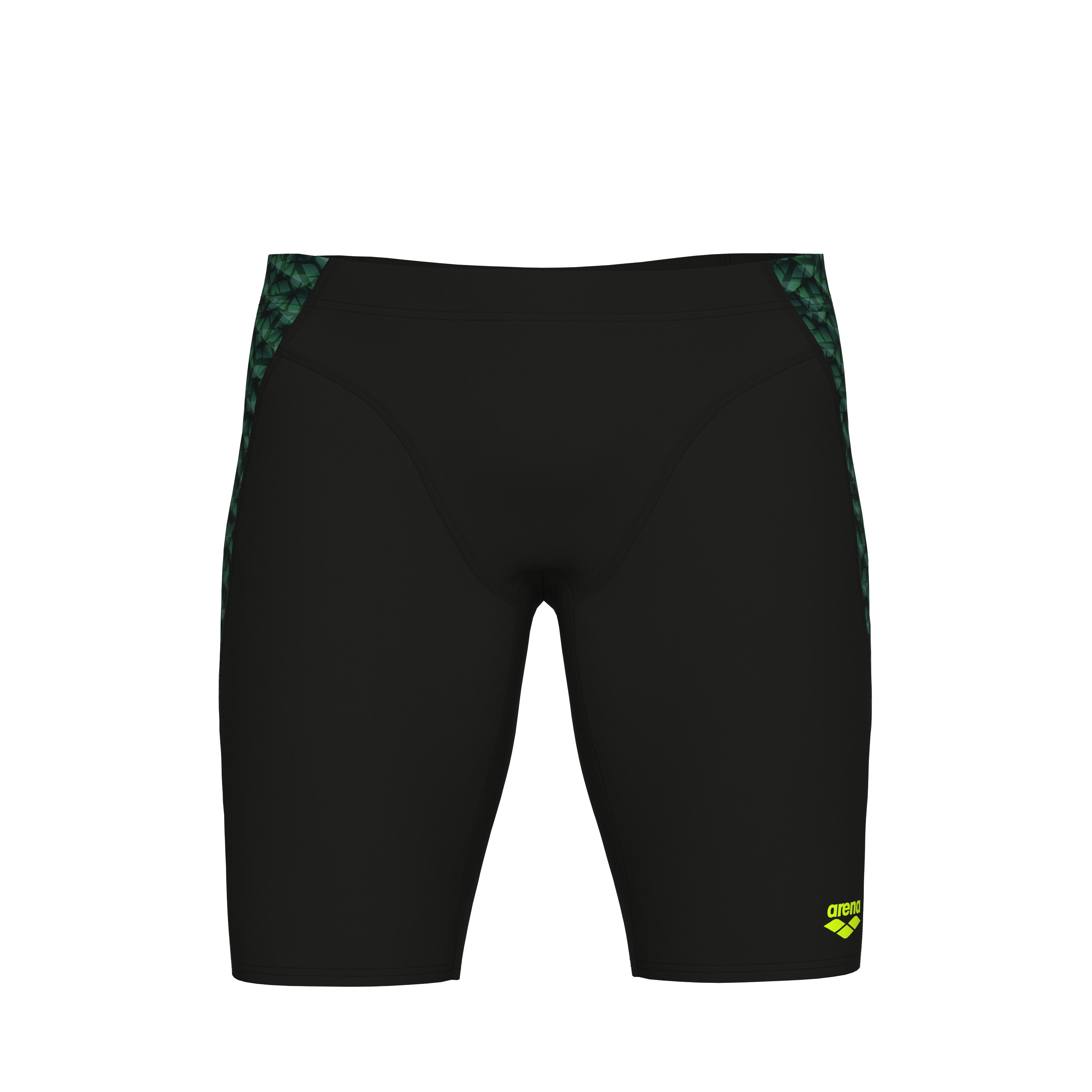 MEN'S ARENA MONOGRAM SWIM JAMMER BLACK-DARK SAGE er med sit monogramme mønster en stilren og præstationsfokuseret badebuks designet til træning og konkurrence. Den har en tætsiddende, hydrodynamisk pasform, der reducerer vandmodstand og øger bevægelsesfriheden.