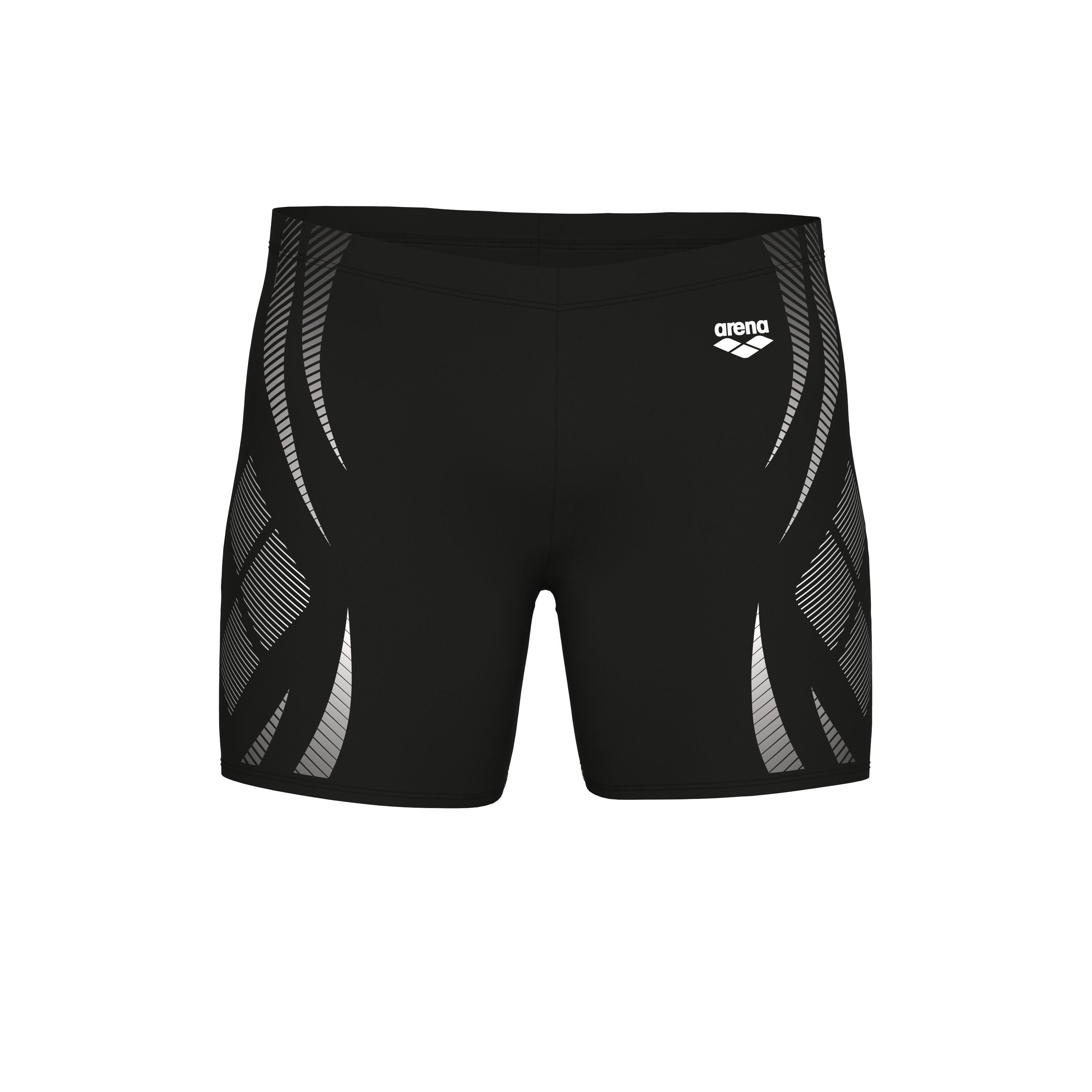 MEN'S ARENA POSEIDONIA SWIM MID JAMMER BLACK-WHITE er en stilfuld og hydrodynamisk badebuks designet til træning og konkurrence. Den har en strømlinet pasform, der reducerer vandmodstand og giver optimal bevægelsesfrihed.