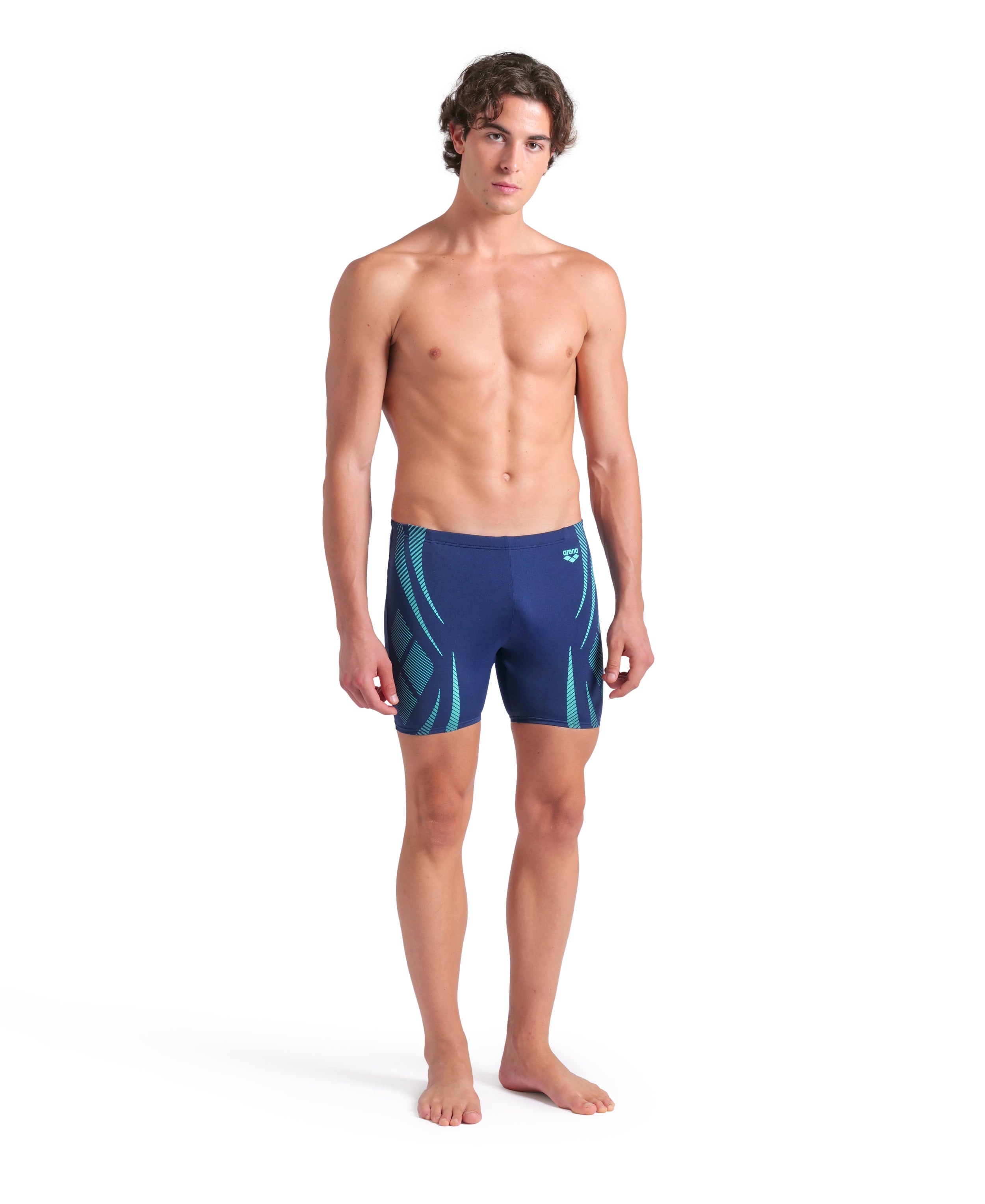 MEN'S ARENA POSEIDONIA SWIM MID JAMMER er en stilfuld og hydrodynamisk badebuks designet til træning og konkurrence. Den har en strømlinet pasform, der reducerer vandmodstand og giver optimal bevægelsesfrihed.