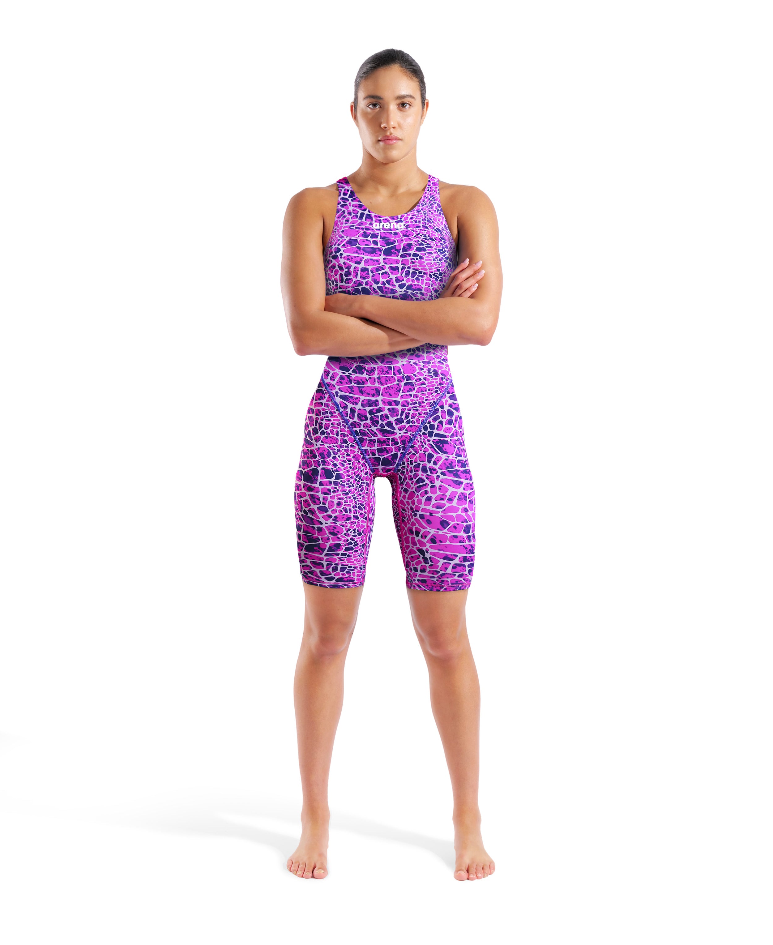 Arena Powerskin ST Next LE Open Back kombinerer ydeevne, lethed og et markant design. Denne limited edition konkurrencebadedragt er inspireret af styrke og smidighed – og kommer i et lyserødt snakeskin-mønster, der symboliserer både kraft og elegance i vandet.